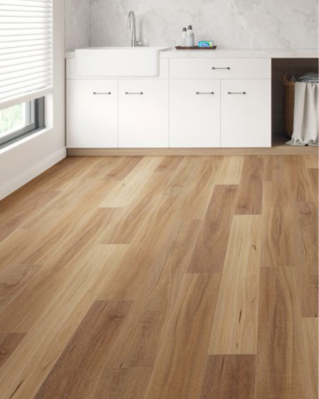Sweep or vacuum regularly to remove grit and abrasive particles. Wipe spills immediately with a clean, slightly damp cloth — do not allow water to sit on the surface or penetrate joins. Avoid steam mops, wet mopping and harsh chemicals. Use felt pads under furniture legs to prevent scratching.